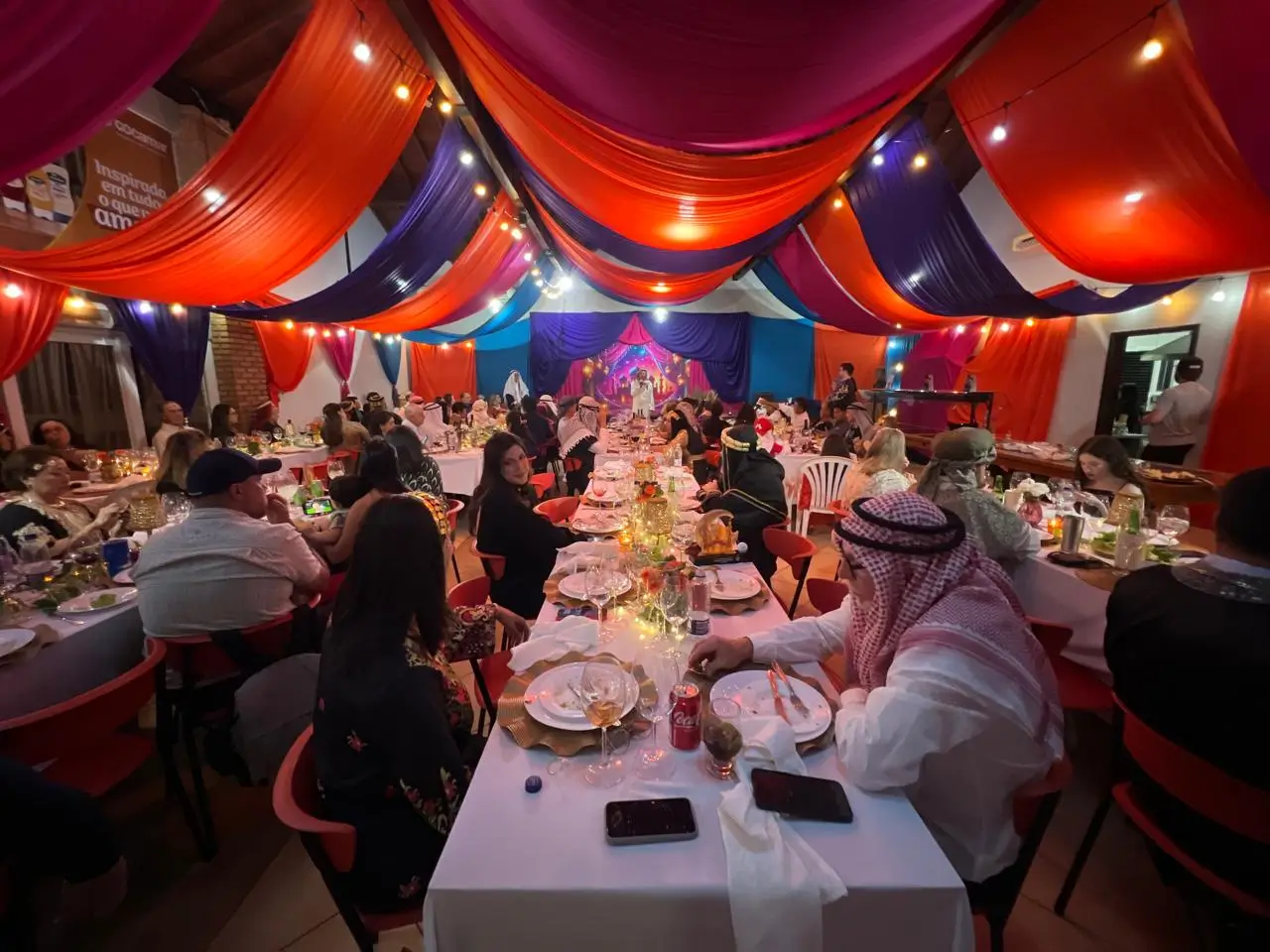 Após as disputas no campo, os casais participantes foram recepcionados com um jantar temático “Noite nas Arábias”, que transformou o ambiente do clube em um cenário mágico. Aromas envolventes, sabores marcantes e uma decoração cuidadosamente planejada criaram uma atmosfera de encanto, proporcionando momentos únicos de confraternização entre os participantes.