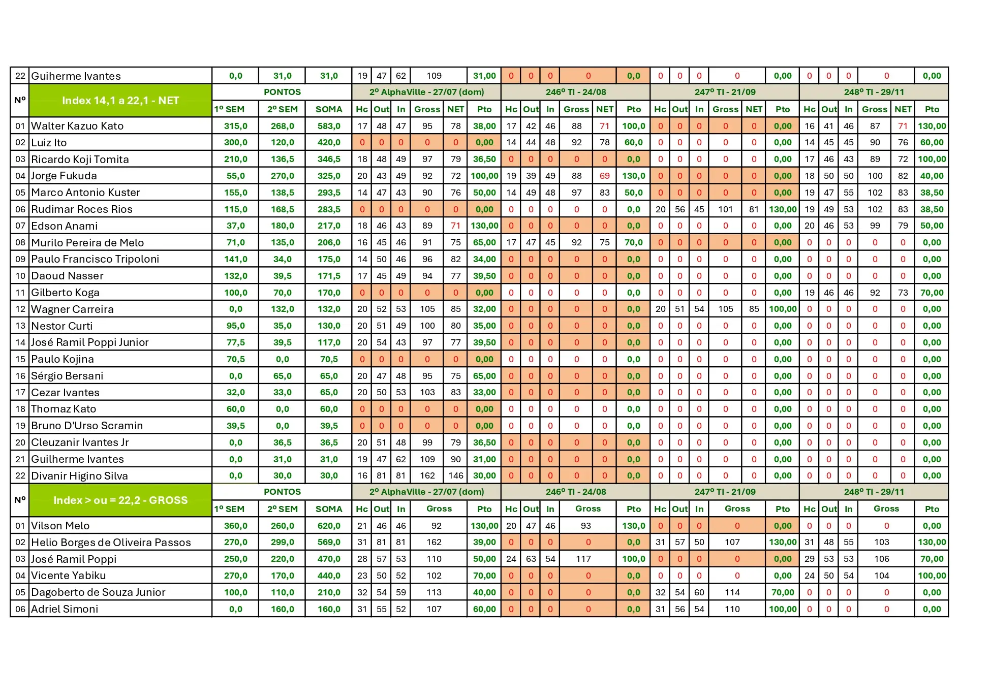 Confira o ranking interno dos nossos golfistas, que a cada dia se desafiam e se apaixonam pelo golfe cada vez mais.